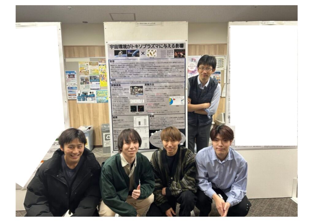 医学科4年生の三浦丞功さん、芝﨑叶真さん、酒井彬良さん、松井太郎さんが、令和7年度医学研究特論発表会において「宇宙環境が寄生虫トキソプラズマに与える影響」に関する研究について、口頭発表およびポスター発表を行いました。